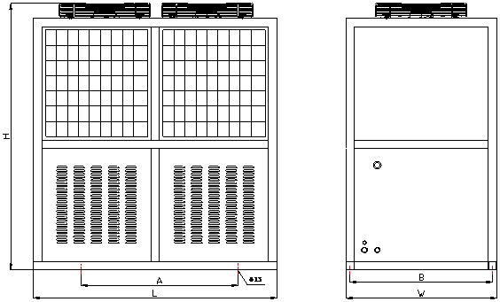 -5℃yle="width:98px;height:22px;"> 冷量(W) yle="width:81px;height:22px;"> 5980 yle="width:81px;height:22px;"> 7340 yle="width:81px;height:22px;"> 8910 yle="width:81px;height:22px;"> 11430 yle="width:81px;height:22px;"> 13300 yle="width:81px;height:22px;"> 15400 yle="width:98px;height:22px;"> 功率(KW) yle="width:81px;height:22px;"> 4220 yle="width:81px;height:22px;"> 5150 yle="width:81px;height:22px;"> 6270 yle="width:81px;height:22px;"> 7520 yle="width:81px;height:22px;"> 8660 yle="width:81px;height:22px;"> 10180 yle="width:49px;height:22px;"> 蒸发-10℃ yle="width:98px;height:22px;"> 冷量(W) yle="width:81px;height:22px;"> 4540 yle="width:81px;height:22px;"> 5580 yle="width:81px;height:22px;"> 6800 yle="width:81px;height:22px;"> 8640 yle="width:81px;height:22px;"> 10030 yle="width:81px;height:22px;"> 11630 yle="width:98px;height:22px;"> 功率(KW) yle="width:81px;height:22px;"> 3710 yle="width:81px;height:22px;"> 4530 yle="width:81px;height:22px;"> 5540 yle="width:81px;height:22px;"> 6570 yle="width:81px;height:22px;"> 7500 yle="width:81px;height:22px;"> 8810 yle="width:49px;height:22px;"> 蒸发-15℃ yle="width:98px;height:22px;"> 冷量(W) yle="width:81px;height:22px;"> 3340 yle="width:81px;height:22px;"> 4120 yle="width:81px;height:22px;"> 5040 yle="width:81px;height:22px;"> 6330 yle="width:81px;height:22px;"> 7340 yle="width:81px;height:22px;"> 8510 yle="width:98px;height:22px;"> 功率(KW) yle="width:81px;height:22px;"> 3170 yle="width:81px;height:22px;"> 3880 yle="width:81px;height:22px;"> 4770 yle="width:81px;height:22px;"> 5600 yle="width:81px;height:22px;"> 6340 yle="width:81px;height:22px;"> 7450 yle="width:49px;height:22px;"> 接口 yle="width:146px;height:22px;"> 吸气接口(mm) yle="width:81px;height:22px;"> φ22 yle="width:81px;height:22px;"> φ28 yle="width:81px;height:22px;"> φ28 yle="width:81px;height:22px;"> φ35 yle="width:81px;height:22px;"> φ35 yle="width:81px;height:22px;"> φ35 yle="width:146px;height:22px;"> 供液接口(mm) yle="width:81px;height:22px;"> φ12 yle="width:81px;height:22px;"> φ12 yle="width:81px;height:22px;"> φ12 yle="width:81px;height:22px;"> φ16 yle="width:81px;height:22px;"> φ16 yle="width:81px;height:22px;"> φ22 yle="width:98px;height:22px;"> 外形尺寸 yle="width:98px;height:22px;"> L (mm) yle="width:81px;height:22px;"> 880 yle="width:81px;height:22px;"> 880 yle="width:81px;height:22px;"> 880 yle="width:81px;height:22px;"> 1060 yle="width:81px;height:22px;"> 1290 yle="width:81px;height:22px;"> 1510 yle="width:98px;height:22px;"> W (mm) yle="width:81px;height:22px;"> 800 yle="width:81px;height:22px;"> 800 yle="width:81px;height:22px;"> 800 yle="width:81px;height:22px;"> 820 yle="width:81px;height:22px;"> 900 yle="width:81px;height:22px;"> 890 yle="width:98px;height:22px;"> H (mm) yle="width:81px;height:22px;"> 735 yle="width:81px;height:22px;"> 735 yle="width:81px;height:22px;"> 735 yle="width:81px;height:22px;"> 835 yle="width:81px;height:22px;"> 835 yle="width:81px;height:22px;"> 1455 yle="width:195px;height:24px;"> 安装尺寸(A×B)(mm) yle="width:81px;height:24px;"> 450×750 yle="width:81px;height:24px;"> 570×635 yle="width:81px;height:24px;"> 570×635 yle="width:81px;height:24px;"> 600×850 yle="width:81px;height:24px;"> 600×850 yle="width:81px;height:24px;"> 1000×910
