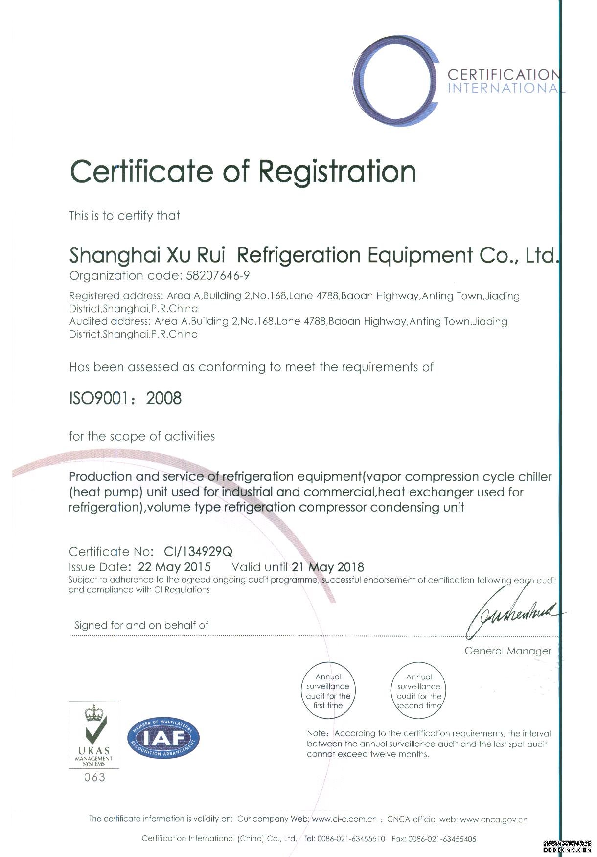 Xurui refrigeration is an ISO9001 certified facility and our products are manufactured using the international authority of the ISO9001-2008 quality system certification, the European CE certification, the license of the National Industrial Product Manufacture of China and a high standard of production management, production license issued by the State Administration of Quality Supervision ensuring our customers get product with the highest quality, safety and security.