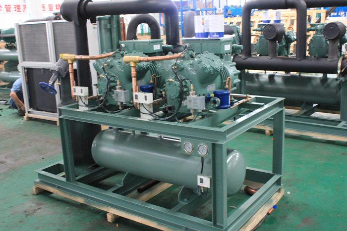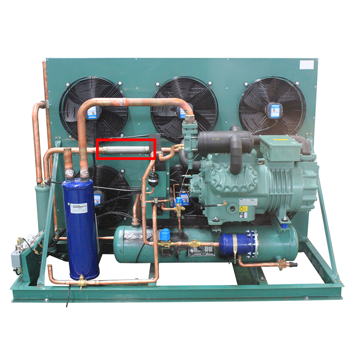 冷凝器一般安装在室外楼顶屋面上,在夏季气温较高的环境里,冷凝器的温度本身就很高,使机组运转压力加大.如果高温天气多,可以在屋面冷凝上加建凉棚,遮挡阳光,使冷凝器温度降低,以达到减轻机器压力,保护机组设备,从而保证冷库温度的目的。