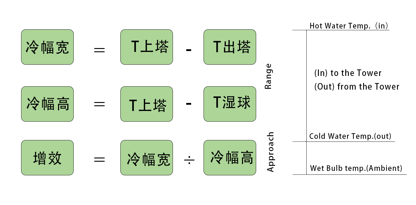 冷却塔出水温度与入口空气湿球温度的差值:小冷幅 = 高性能