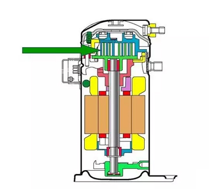 7、涡旋式压缩机无余隙容积,能保持高容积效率运行;