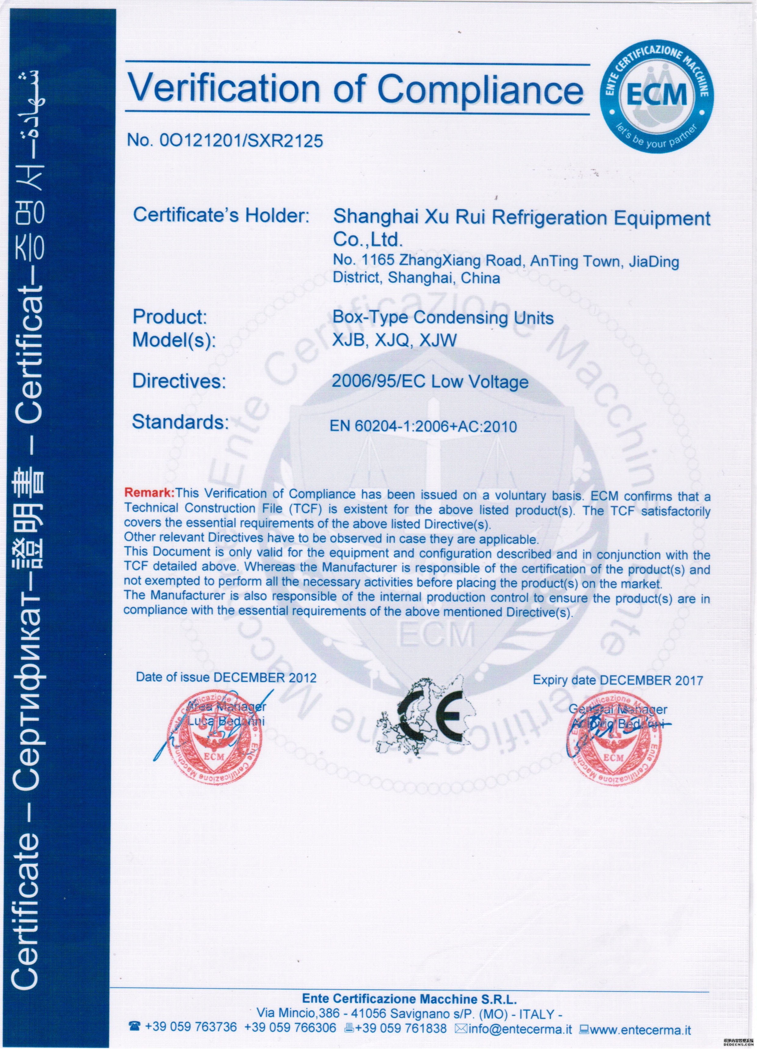 Xurui refrigeration is an ISO9001 certified facility and our products are manufactured using the international authority of the ISO9001-2008 quality system certification, the European CE certification, the license of the National Industrial Product Manufacture of China and a high standard of production management, production license issued by the State Administration of Quality Supervision ensuring our customers get product with the highest quality, safety and security.