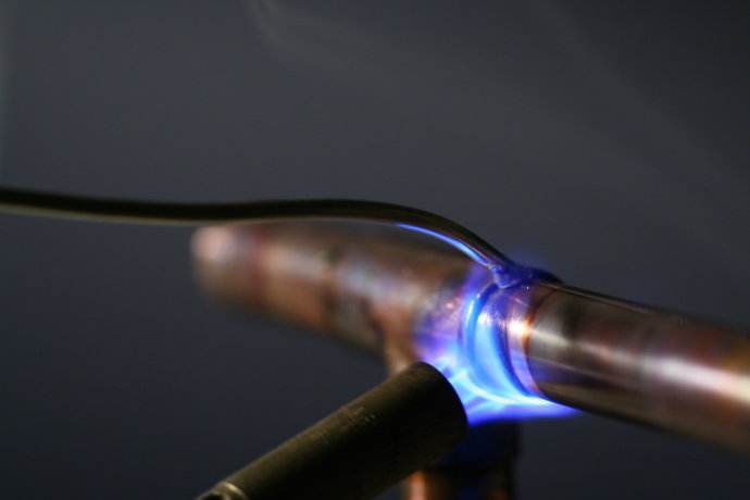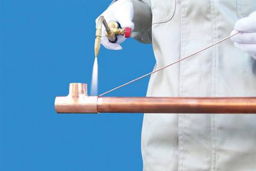 铜管与铜管焊接一般采用银焊,银焊条的含银量为 25%、15%或 5%;也可用铜磷系列焊条。它们均具有良好的流动性,并不需要焊剂。