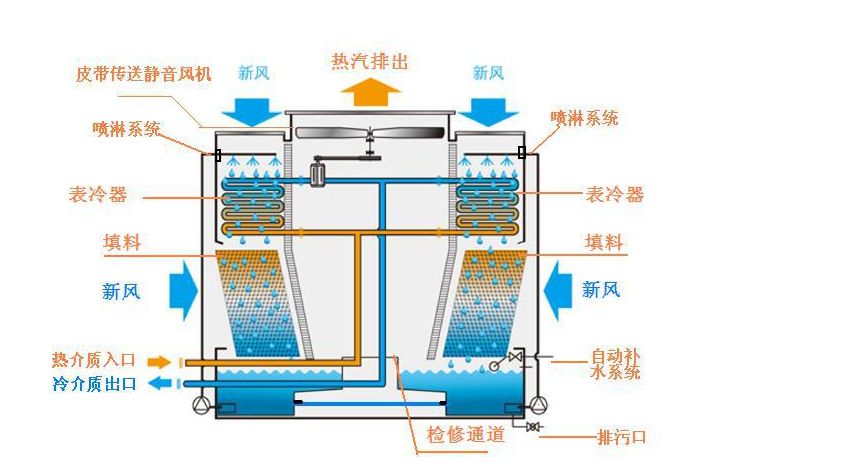 闭式:本设备适合在干旱、缺水、沙尘暴频发地区等恶劣环境中使用。能冷却介质多水、油类、醇类、淬火液、盐水及化学液等多种介质,介质无损耗和成份稳定。能耗低。