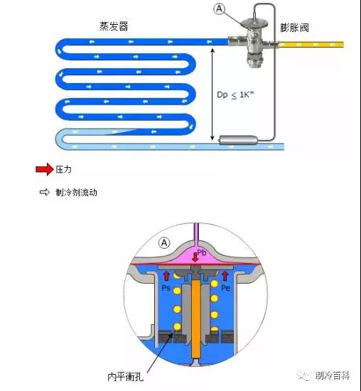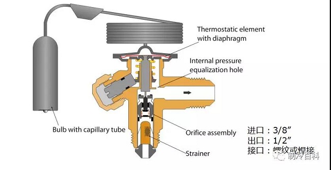 看清楚上图结构了吗?内平衡式热力膨胀阀(上图)是采集的压力为膨胀阀出口压力。